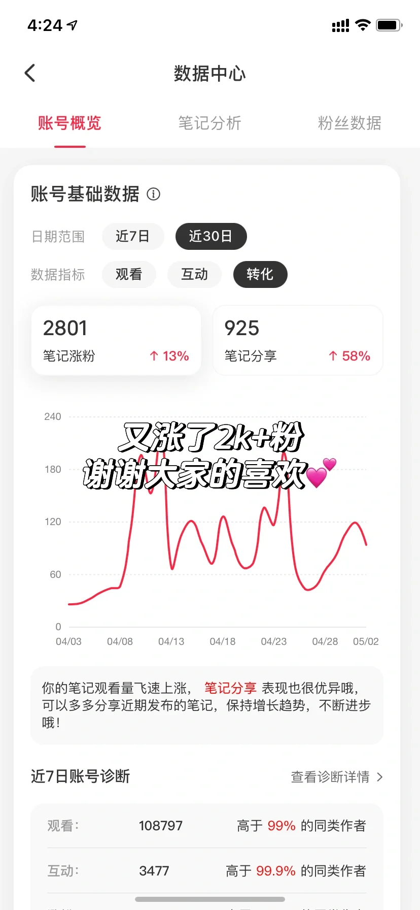 更新一定要勤,每周不低于3篇,不要太在意数据,我也有数据不好的时候,起伏很正常的,不好的就复盘,下次改进,千万别焦虑💕