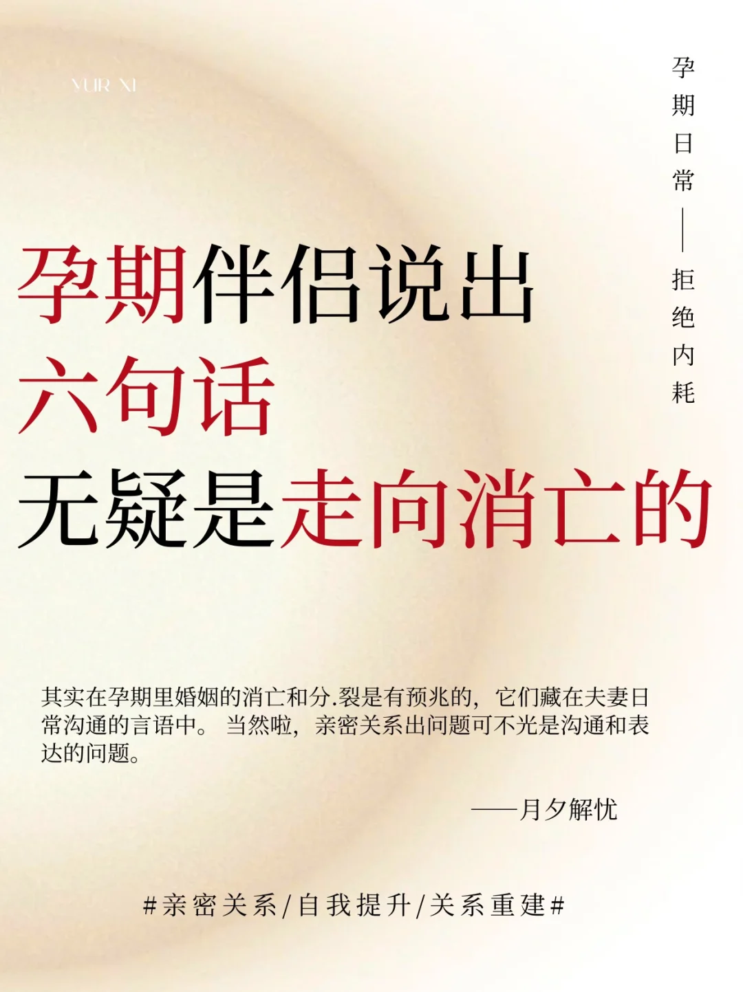 其实在孕期里婚姻的消亡和分.裂是有预兆的,它们藏在夫妻日常沟通的言语中。