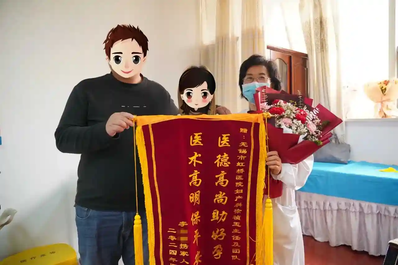 ,和丈夫一起为徐主任送上锦旗表达感谢。