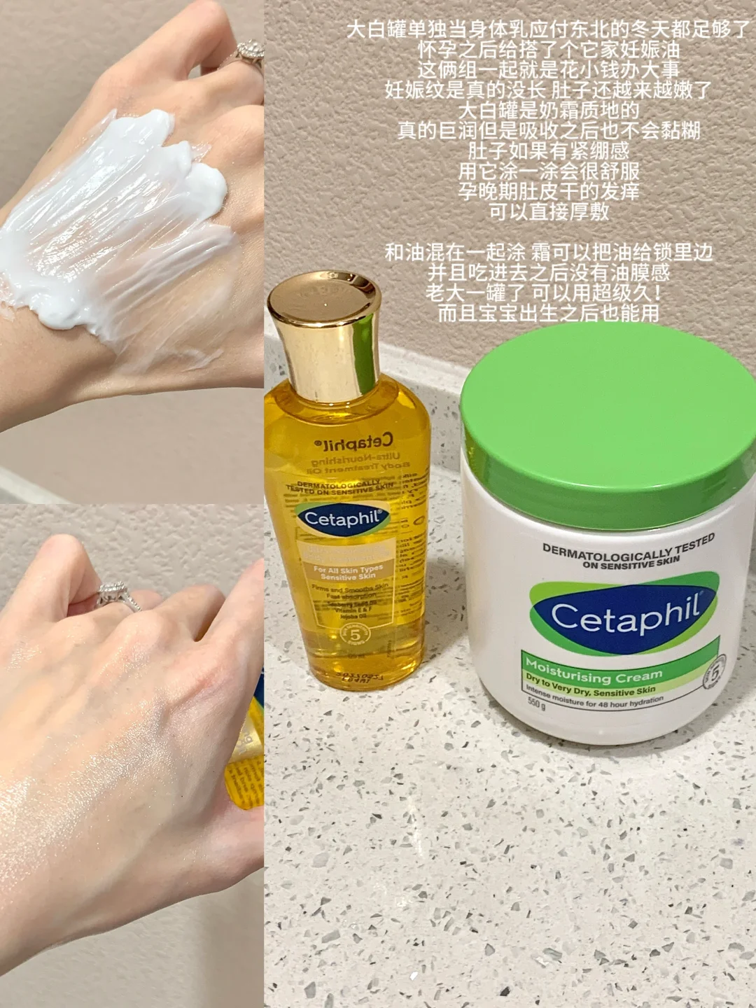 🧴丝塔芙大白罐+妊娠油:花小钱办大事cp🔒大白罐滋润度真的很高,整个孕期就用这个也ok!混合之后刚好可以用霜把油锁住,还没有油膜感,我很爱!而且孕晚期肚子很容易发痒,直接厚涂大白罐也能缓解。