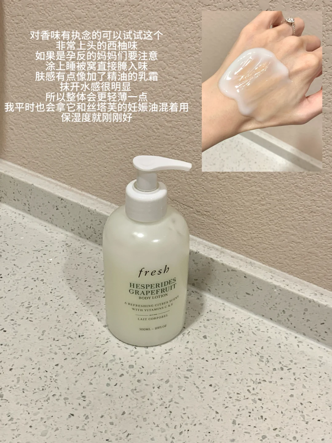🧴馥蕾诗西柚身体乳:非常上头的西柚味,对味道有偏好的可以入这个,肤感有点像加了精油的乳霜,吸收之后比较轻薄,我要搭着油用保湿力才够。