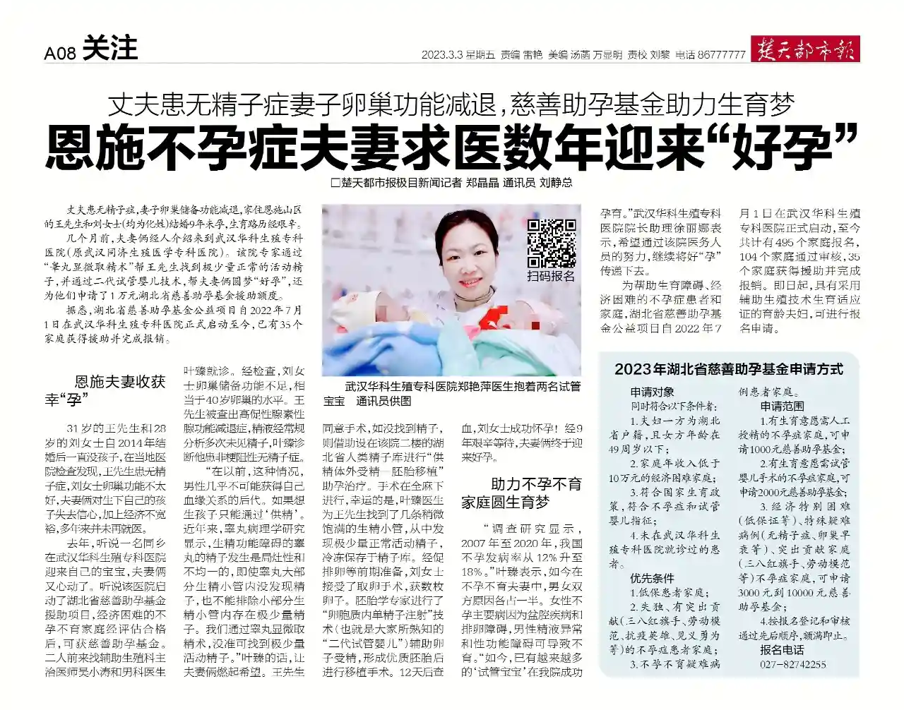 ✨“湖北省慈善助孕基金项目”旨在帮助有特殊困难的不孕不育家庭,减轻经济负担,提高健康水平,尽早实现新生命诞生的梦想。