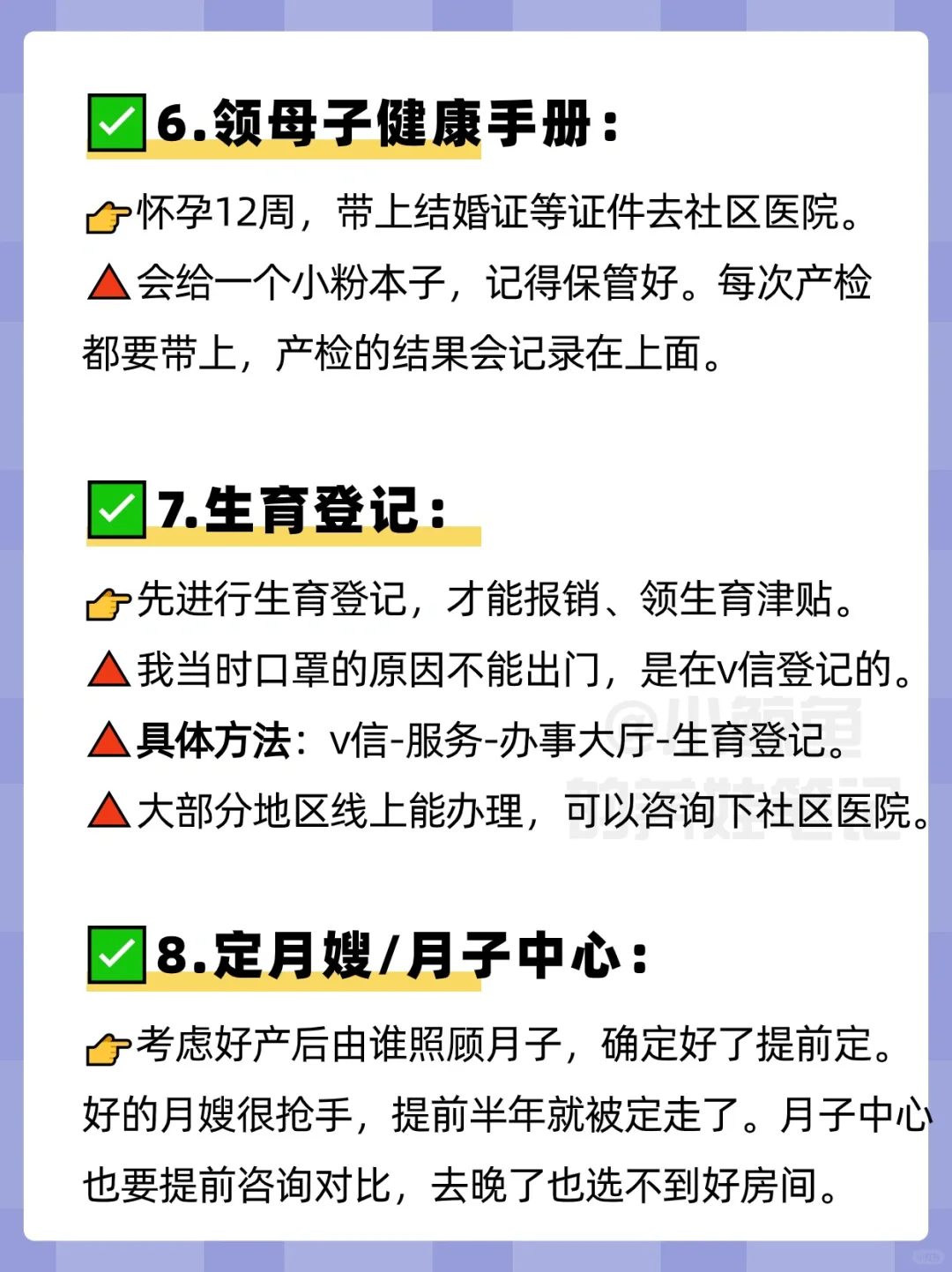 🤚附上怀孕后的📕待办事项清单+⏰产检时间表,姐妹们按照顺序去完成,初次怀孕不迷茫‼宝宝们看看图5⃣-1⃣0⃣即可哦~